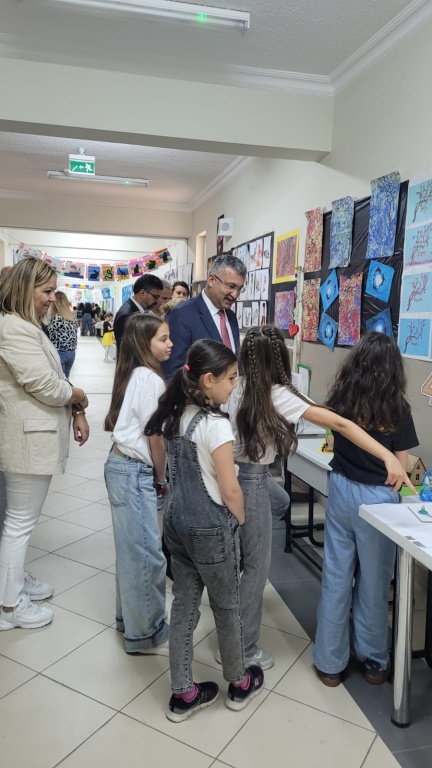 2024-2025 Eğitim Öğretim Yılı Yılsonu Sergisinde Teknoloji Tasarım Öğretmeni Zeynep AKKUŞ ve Sınıf Öğretmenlerimizin öğrencileriyle hazırladığı çalışmalar yer aldı. Sergi açılışımıza Çankaya İlçe Milli Eğitim Müdür Vekili Ali GÜZEL ve Şube Müdürlerimiz Abdurrahim BİRCAN, Hikmet ASAR katılarak onurlandırdılar.
